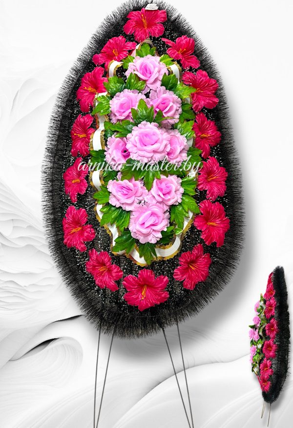 Ритуальный венок эконом “Нортон”. Размер 100/60см без учета ног. h ног -25см