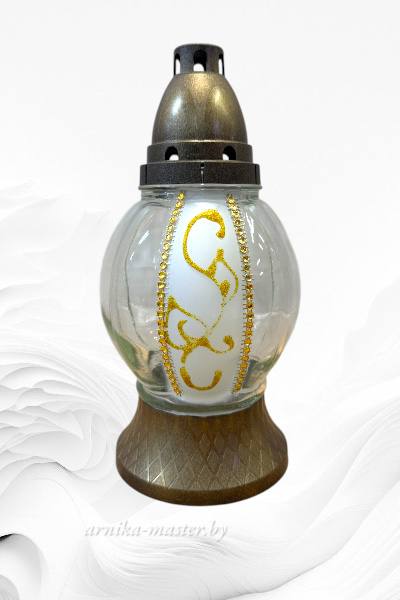 Ритуальная лампада Z-318(белая). Высота 25 см. Материал: стекло +пластик.Вкладыш 365 ₽