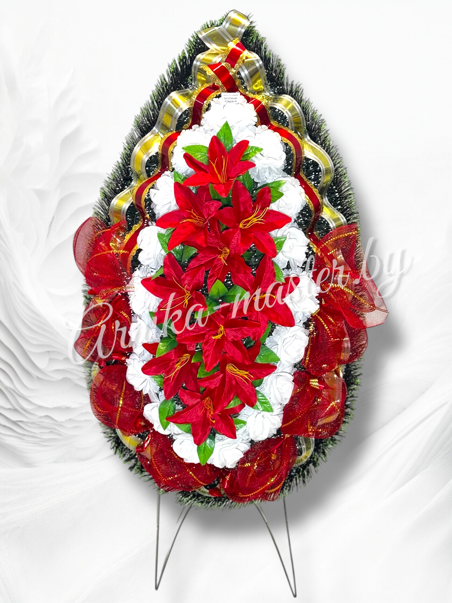 Вы можете также заказать на нашем сайте arnika-master.by оптом и в розницу не только траурный венок, но и ритуальные корзины, ритуальные лампады, ритуальные товары, ритуальные букеты и так далее.