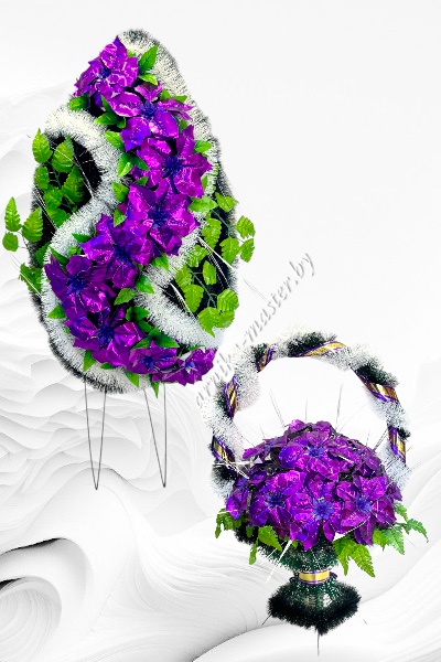 Траурный комплект дуэт «Мерцание» Размер венка 110/75см, корзины: 90/60см