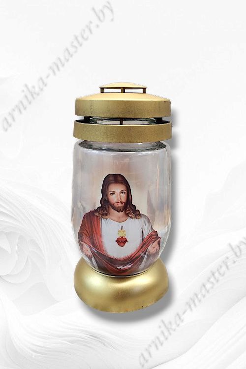 Траурная лампада “Иисус 4Д” Высота 22см, вкладыш, материал: стекло+пластик