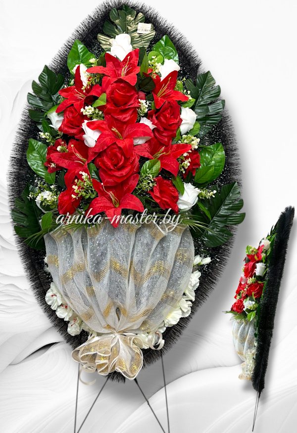 • Общая высота: 135 см — венок такого размера производит монументальное впечатление и идеально подходит для возложения.