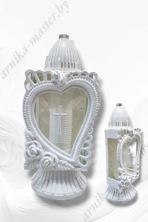 Траурная лампада “Капличка большая белая Крест” Высота 34см, вкладыш, материал: стекло+пластик