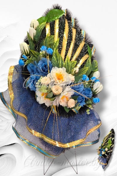 • Лента: Завершающим штрихом является траурная лента, на которой, как правило, размещается памятная надпись, выражающая скорбь и уважение близких, друзей или коллег.