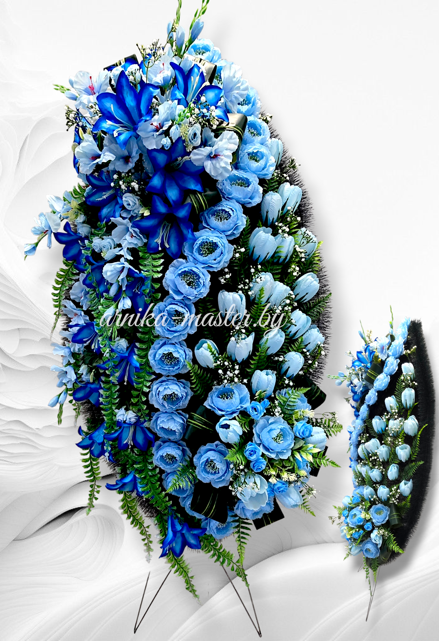 Главная O Ассортимент венков VIP Ассортимент венков "Дизайнерские" Ритуальный венок дизайнерский ”Импульс”