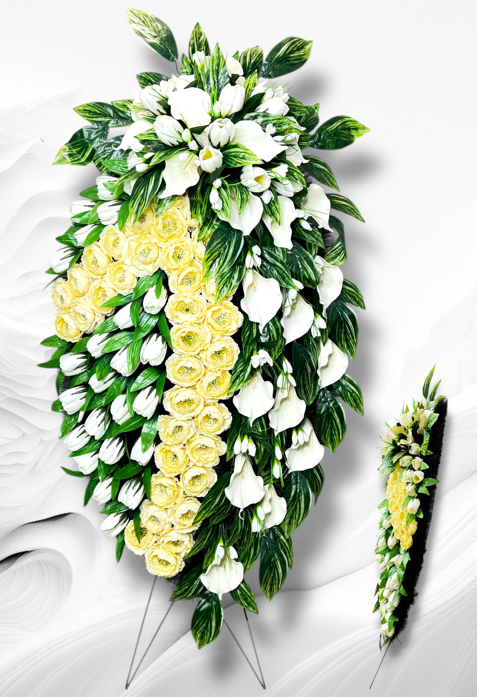 Траурный комплект дуэт «Дуэт Шарлиз» Размер венка 130/70см, корзины: 92/60см 5 500 ₽