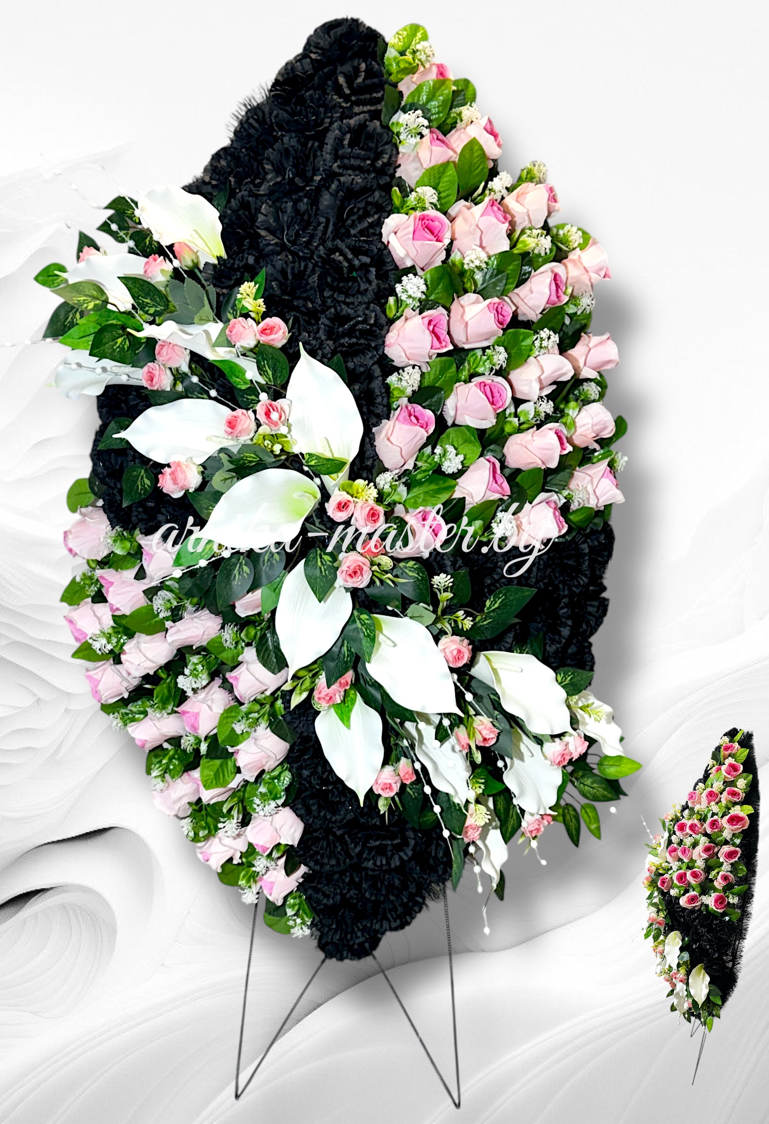 Главная O Ассортимент венков VIP Ассортимент венков "Дизайнерские" Ритуальный венок дизайнерский ”Зеркальный 2”