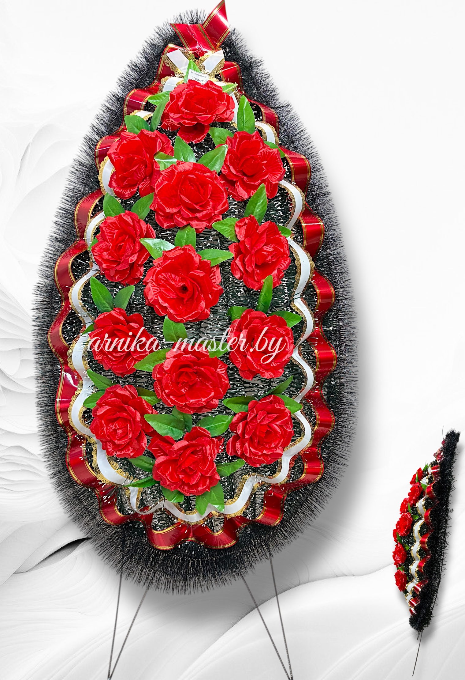 Вы можете также заказать на нашем сайте arnika-master.by оптом и в розницу не только траурный венок, но и ритуальные корзины, ритуальные лампады, ритуальные товары, ритуальные букеты и так далее.