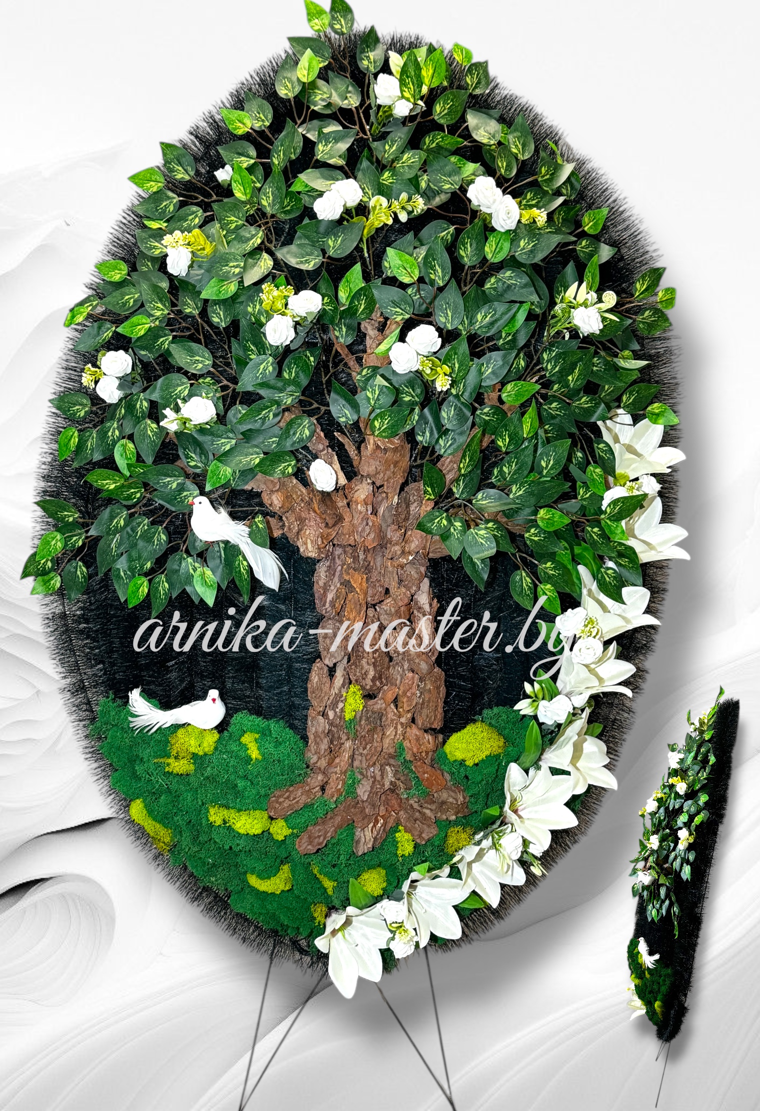 Главная O Ассортимент венков VIP Ассортимент венков "Премиум" Траурный венок премиум ”Древо жизни”